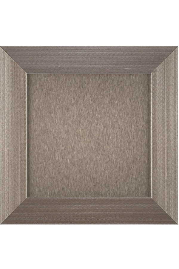 Add a modern accent to your design using one of our Aluminum Frame Cabinet Doors, which span contemporary, Euro and transitional styles. Shown here in a bold Brushed Stainless Finish with Matching Panel for attractive hidden storage.