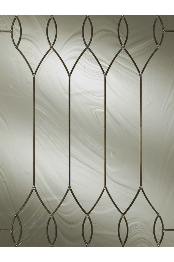 The wavy texture of the Merrimack glass door, married with the delicate loops and lines of the dark leading, create a carefree and elegant look. Watch your traditional and transitional designs come to life when using this glass door