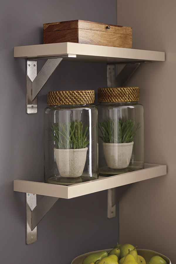 Wall shelving perfectly matched to your wood species, Tray Shelves feature standard rails and are open to your choice of support brackets, letting you put just the right added touch on your space.